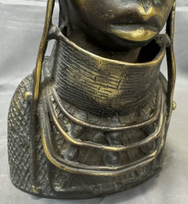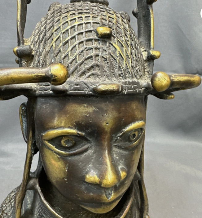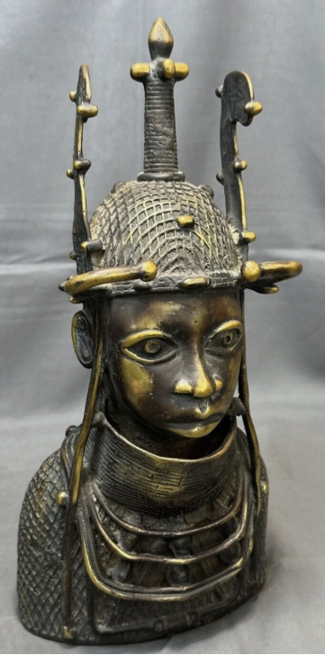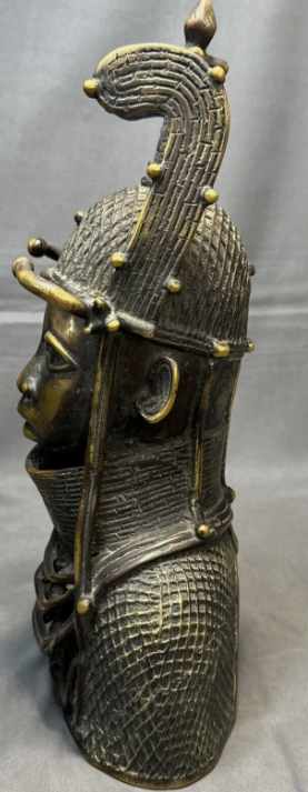 Cast using the lost-wax method, the piece reflects the importance of hierarchy, identity, and commemoration in Benin royal culture. Such heads were traditionally used in shrines and court settings to honor ancestors and rulers.
